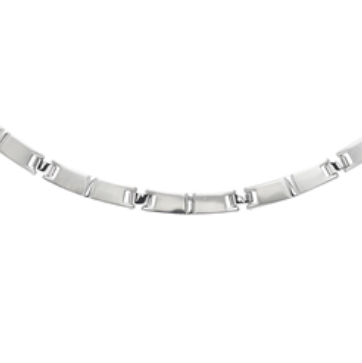Mit diesem Collier wählen Sie eine zeitlos schöne und vielzeitig tragbare Halskette, die mit ihrer puren Eleganz aus stahlfarbenen Gliederelementen verzaubert. Die gebürstete Oberfläche lässt eine matte, dezente Optik entstehen, die nie zu auffällig wirkt und dennoch mit ihrer edlen Ausstrahlung in ihren Bann zieht. Ein Collier, das Sie zu silberfarbenem Schmuck aller Art kombinieren und jeden Tag tragen können.