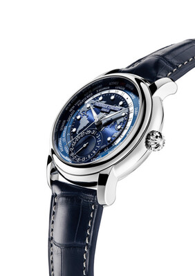 Frédérique Constant World Timer mit mechanischem Manufaktur Werk. Diese Uhr ist ein Meisterstück der Uhrmacher Kunst. Das Manufaktur Werk wird seit 20212 im mechanischen Uhren von Frédérique Constant eingesetzt. Es ist der perfekte Zeitmesser für Reisende und solche die es noch werden. Das schöne Zifferblatt mit seiner Zeitzonen- Einteilung und der offenen Weltkarte in wunderschönem blau. Harmoniert mit dem blauen Lederarmband und der Faltschliesse aus Stahl.