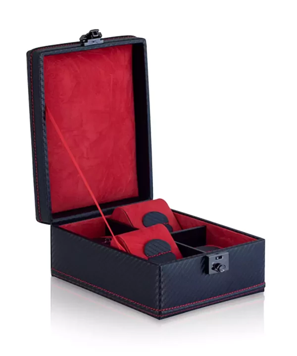 Sattes rot, umhüllt von einer edlen Ummantelung in Carbon Optik – so präsentiert sich die neue Serie Carbon. Bestehend aus Uhrenboxen für eine, zwei, drei, vier oder zehn Uhren sowie einem Manschettenknopfetui bietet diese Serie einen ganz besonderen Aufbewahrungsort für Ihre wertvollen Schmuckstücke. Die feinen, in rot abgenähten Ziernähte verleihen der Serie zusätzlich einen ganz besonderen Charme.